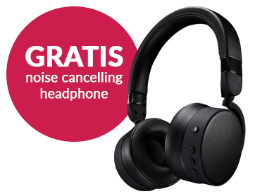 Schrijf je nu in voor een cursus of opleiding naar keuze en ontvang een gratis noise cancelling headphone. De noise cancelling headphone zorgt ervoor dat jij je optimaal kunt concentreren tijdens het studeren.