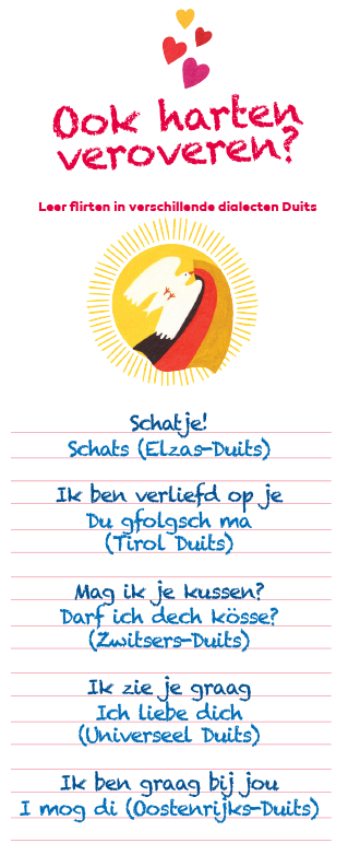 De taal van de liefde bestaat uit meer dan alleen woorden. Toch is het fijn om elkaars moedertaal te spreken, dat ontdekten Harvey (30) en Judith (29). Tijdens een vakantie in Kroatië veertien jaar geleden was het liefde op het eerste gezicht tussen hen. Na elkaar jarenlang uit het oog te zijn verloren, laaide de liefde weer op. Uiteindelijk verhuisde de Duitstalige Judith vijf jaar geleden van Wenen naar ons land om bij haar Harvey te kunnen zijn. Ze spreekt ondertussen vloeiend Nederlands, en hij is nu Duits aan het leren. Het koppel vertelt hoe belangrijk het is om elkaars taal te spreken.