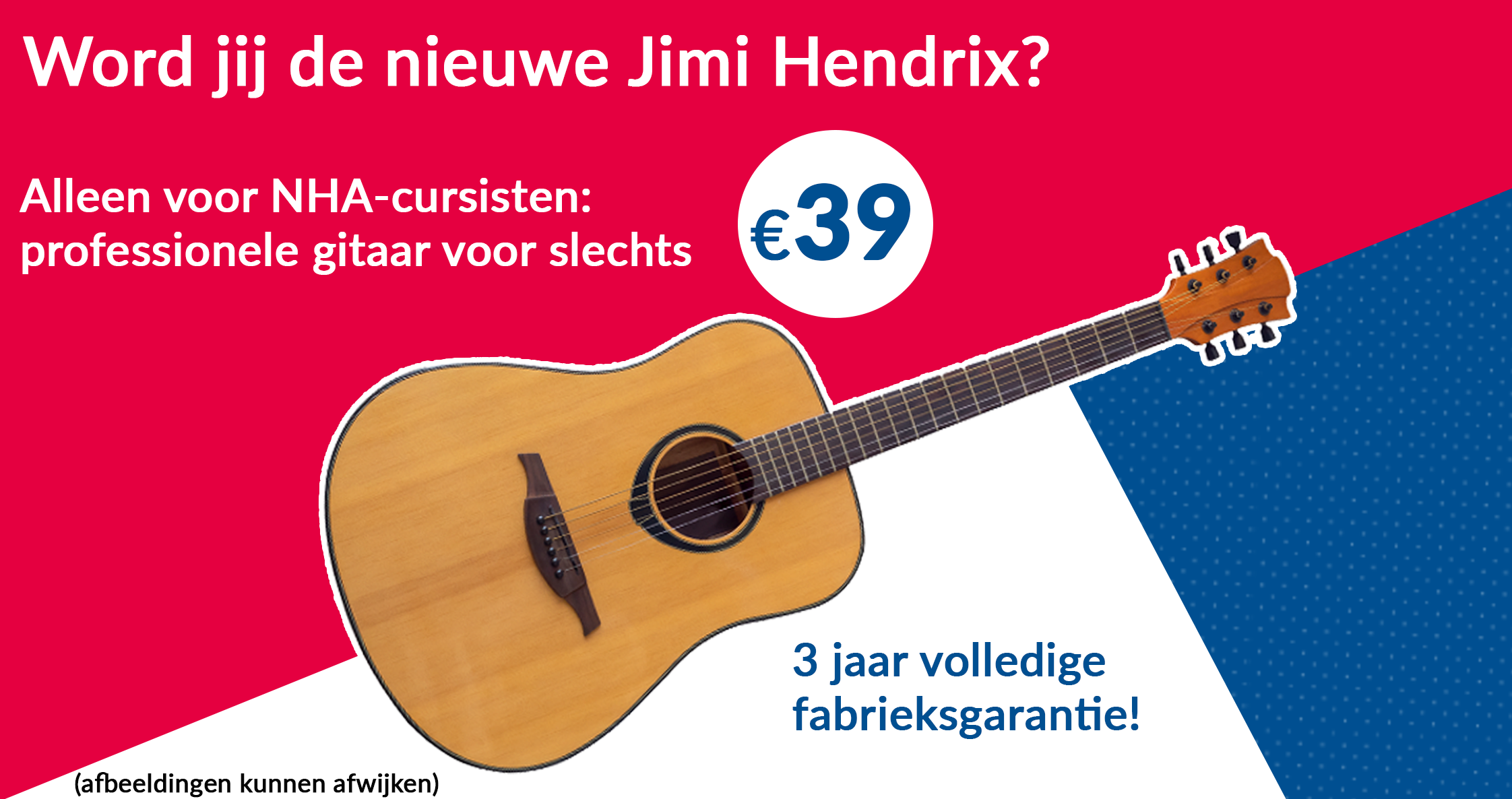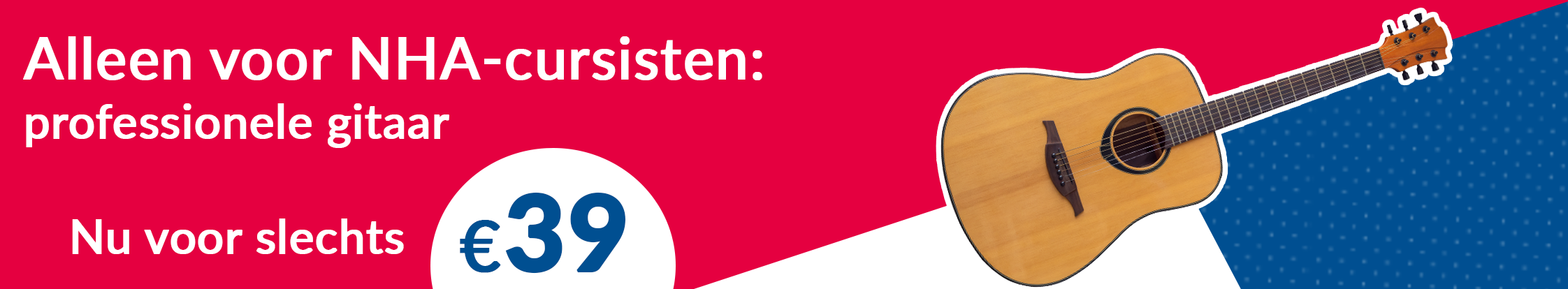Aan het eind van je cursus Gitaar kun je het NHA getuigschrift voor € 29,- aanvragen als je al je huiswerk hebt ingezonden en hiervoor was geslaagd (een gemiddelde van 5,5 of hoger).