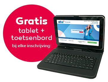 Kies voor flexibel studeren met NHA. Dit is nu extra aantrekkelijk want je krijgt een Gratis Tablet inclusief toetsenbord cadeau bij een cursus of opleiding naar keuze.